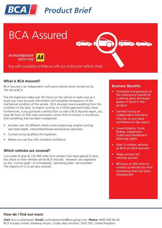 While it is not possible to test cars before buying a car from auction, the majority of cars on sale are offered with a mechanical inspection and we recommend favouring these vehicles where possible. Combined with service history and DVLA (MOT) history, these give us greater insight into the condition of the vehicle, helping us to anticipate any potential work that may be desirable and factor in associated costs. As the largest provider of auction cars in the UK, BCA offer the ‘BCA Essential’ and ‘BCA Assured’ reports. Neither is comprehensive, but a BCA Assured report allows you to claim repair costs if you find a fault that wasn’t noted (provided it is in one of the categories included on the report) within 48 hours or 500 miles of collection from a BCA centre (whichever comes sooner) or after taking delivery of the vehicle if you’ve opted to use BCA transport to provide that service.